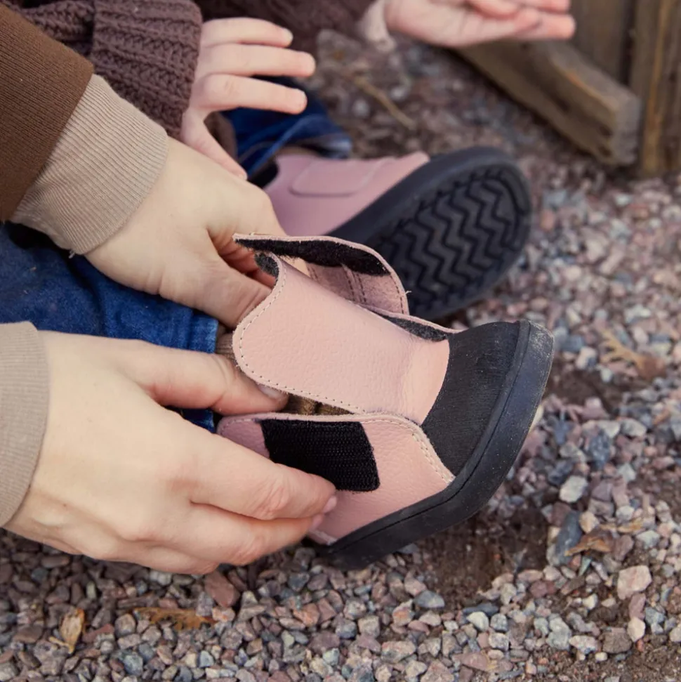 Kavat vinterstøvlerne er designet med et mellemhøjt skaft, der går op over anklerne og giver god støtte og beskyttelse mod kulde og sne. Støvlerne lukkes nemt og sikkert med en bred velcrorem over vristen, hvilket gør dem lette at tage af og på – også for de mindste.