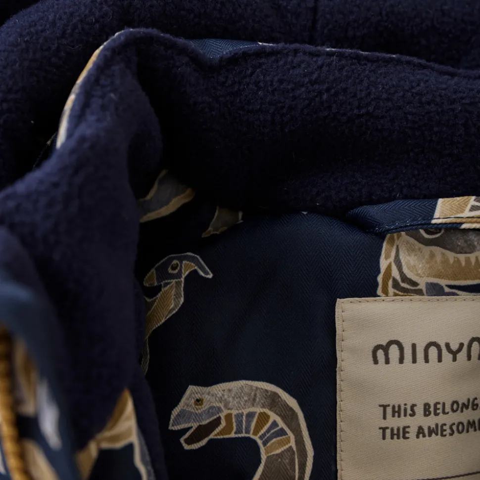 Varm snedragt fra Minymo. Dragten er lavet af 100% polyester med fleecefor på indersiden. Dragten har mange funktioner såsom aftagelig hætte og aftagelige gummistropper ved fødderne. Blød elastik ved både håndled og ankler for at sikre en god pasform. Dragten har refleksdetaljer for at sikre, at barnet altid kan ses, når det leger udenfor. Dragten er åndbar og vandtæt med et vandsøjletryk på 10.000 mm samt slidstyrke på 60.000. Imprægneret med BIONIC FINISH® ECO. Certificeret i hht. GRS