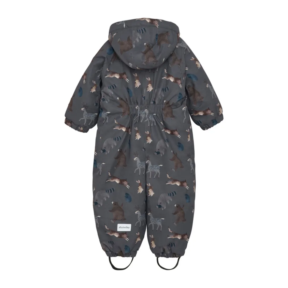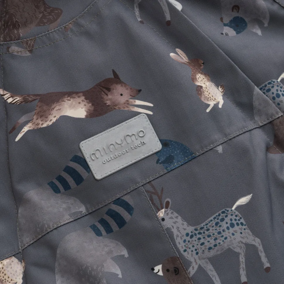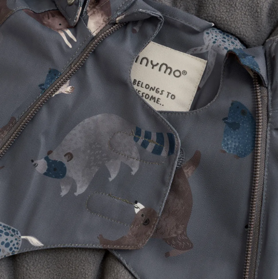 Varm og funktionel snedragt fra Minymo med et flot all-over print. Dragten er fremstillet i 100% polyester og har blødt fleecefor indvendigt for ekstra komfort. Den er udstyret med praktiske detaljer som aftagelig hætte, aftagelige gummistropper ved fødderne samt elastik ved håndled og ankler for optimal pasform. Refleksdetaljer øger synligheden i mørke, og de to lynlåse i siderne gør den nem at tage af og på. Dragten er både åndbar og vandtæt med et vandsøjletryk på 10.000 mm og en slidstyrke på 60.000. Imprægneret med BIONIC FINISH® ECO og certificeret i henhold til GRS – lavet med over 50% genanvendt materiale.