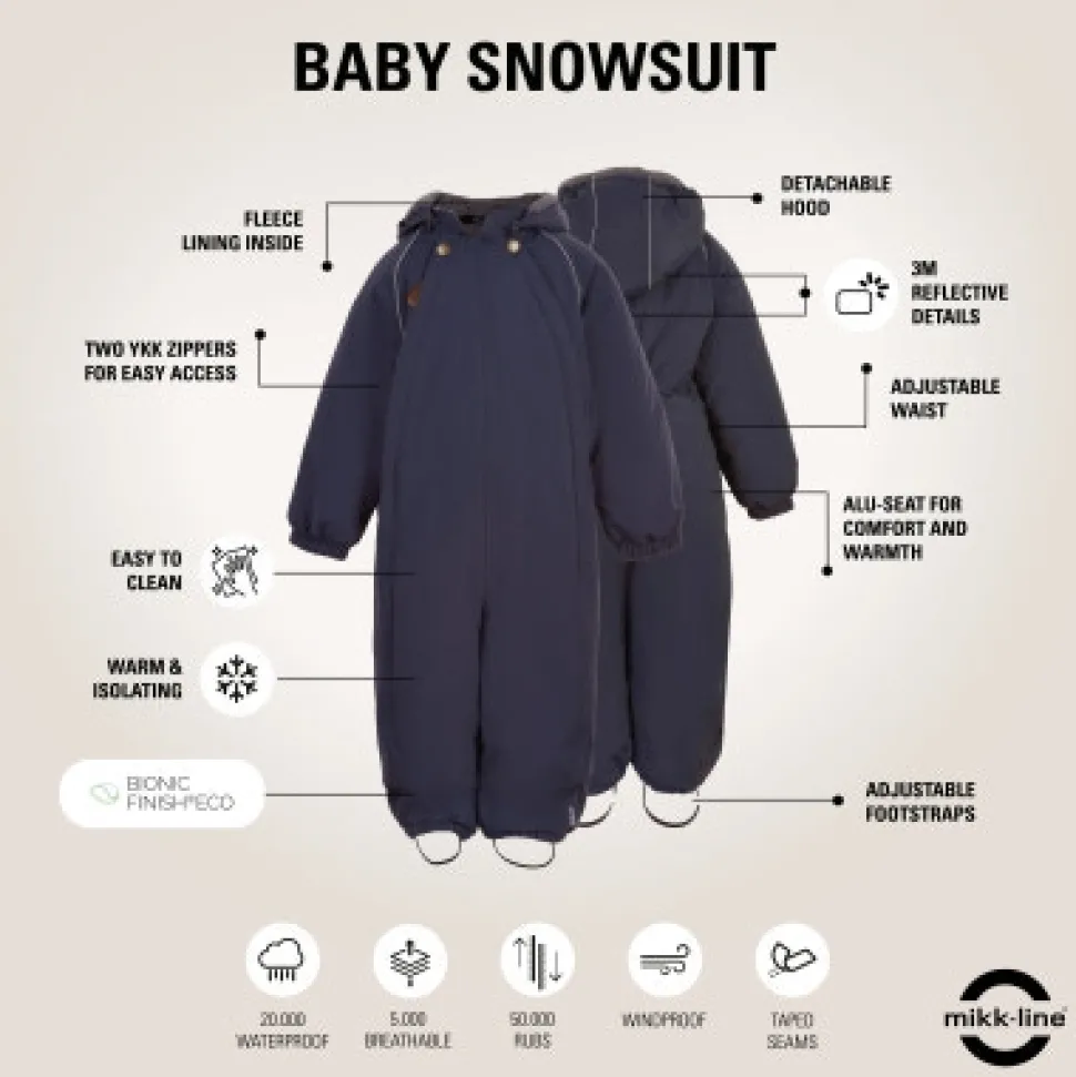 Ensfarvet Mikk-line baby flyverdragt til børn, der elsker leg og eventyr i naturen og under åben himmel. Det er en holdbar nylon flyverdragt af høj kvalitet og enkelt design, der holder barnet varmt og komfortabelt i det kolde efterårs- og vintervejr med vind, regn og sne. Flyverdragten er lavet af nylon og polstret med polyesterfyld. Hætten og overkroppen har blødt fleece foer, hvorimod ærmerne og benene har en glat og gnidningsfri indvendig overflade. Vi har anvendt Solution Dye til farvning af det glatte for, da det bl.a. mindsker forbruget af vand i produktionen. Den er naturligvis også fluorfri med BIONIC-FINISH® ECO imprægnering.
