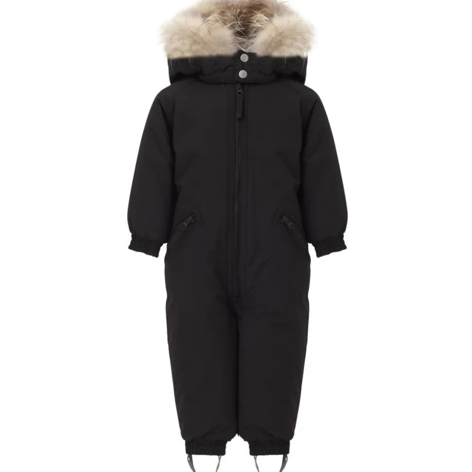 Vinter flyverdragt med Thermolite isolering, vandtæt og åndbart yderstof. Foret med mini ternet bomuld i øverste del og nylon i benene for let at kunne tage dragten af og på. Aftagelig hætte med aftagelig SAGA pels kant, fleece forede lommer for komfort, elastik midt bag for pasform, elastik manchetter ved hænder og fødder, justerbar og aftagelig elastik under fødder.