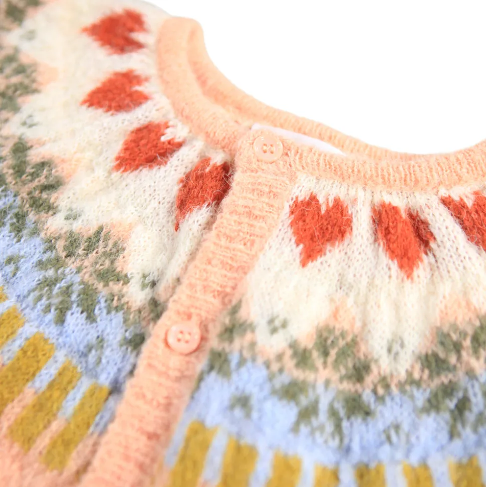 Heldragt fra Molo i blød alpakauld med nordiskinspireret mønster. Dragten har lange ærmer og ben samt en praktisk knaplukning foran, der gør den nem at tage af og på.