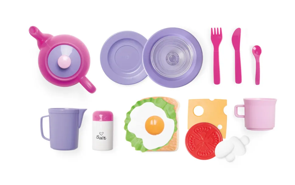 Dette fine frokostsæt fra For My Little Princess indeholder blandt andet brød, æg og salat til en lækker frokost. Inviter familien over til en pause og få stillet den værste sult. Frokostsættet egner sig både til leg ude som inde. Det er oplagt at udvide legen sammen med andre sæt fra For My Little Princess. Kombiner eventuelt frokostsættet med morgenmads- eller tesættet, og byd nu endnu flere på mad og drikke. For My Little Princess inviterer både drenge og piger til leg i et vidunderligt, farverigt univers af lilla og lyserøde nuancer. Universet giver rig mulighed for fantasifulde rollelege med bl.a. mad, te og kager. Frokostsættet er danskproduceret legetøj fra dantoy fremstillet af svanemærket plast. Sættet består af 18 dele i de fine For My Little Princess-farver.