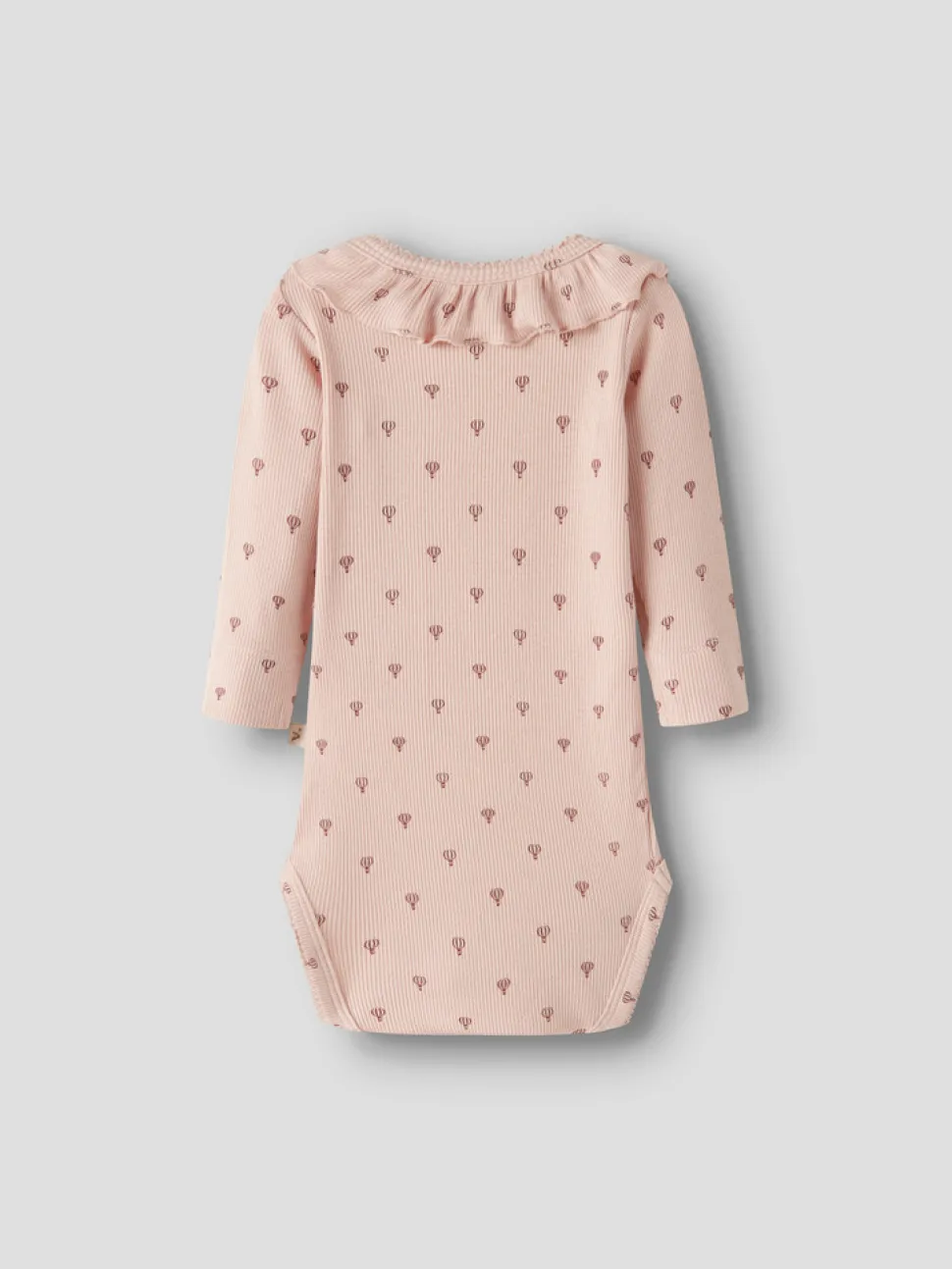 Sammensæt det perfekte outfit til dit barn med kvalitetsdagsmodetøj og skab et behageligt og trendy look.Jersey er et let og elastisk stof med en blød overflade og inderside, der giver en behagelig fornemmelse og bevægelsesfrihed. – Produkttype: Bodysuit – Halsudskæring: Rund halsudskæring – Ærmer: Lange ærmer (L/S) – Lukning: Trykknaplukning – Ekstra detaljer: Mærke, flæser, babylock-detaljer – Tryk: Tryk gentaget over hele produktets overflade – Advarsel: ADVARSEL! Holdes væk fra ild