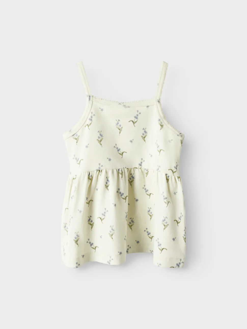 Lad din lille pige stråle i denne smukke sommertop, der kombinerer et livligt sommerprint med fine blonder og tynde stropper. Perfekt til både leg og festlige lejligheder, denne top er designet til at give din pige en følelse af lethed og elegance.