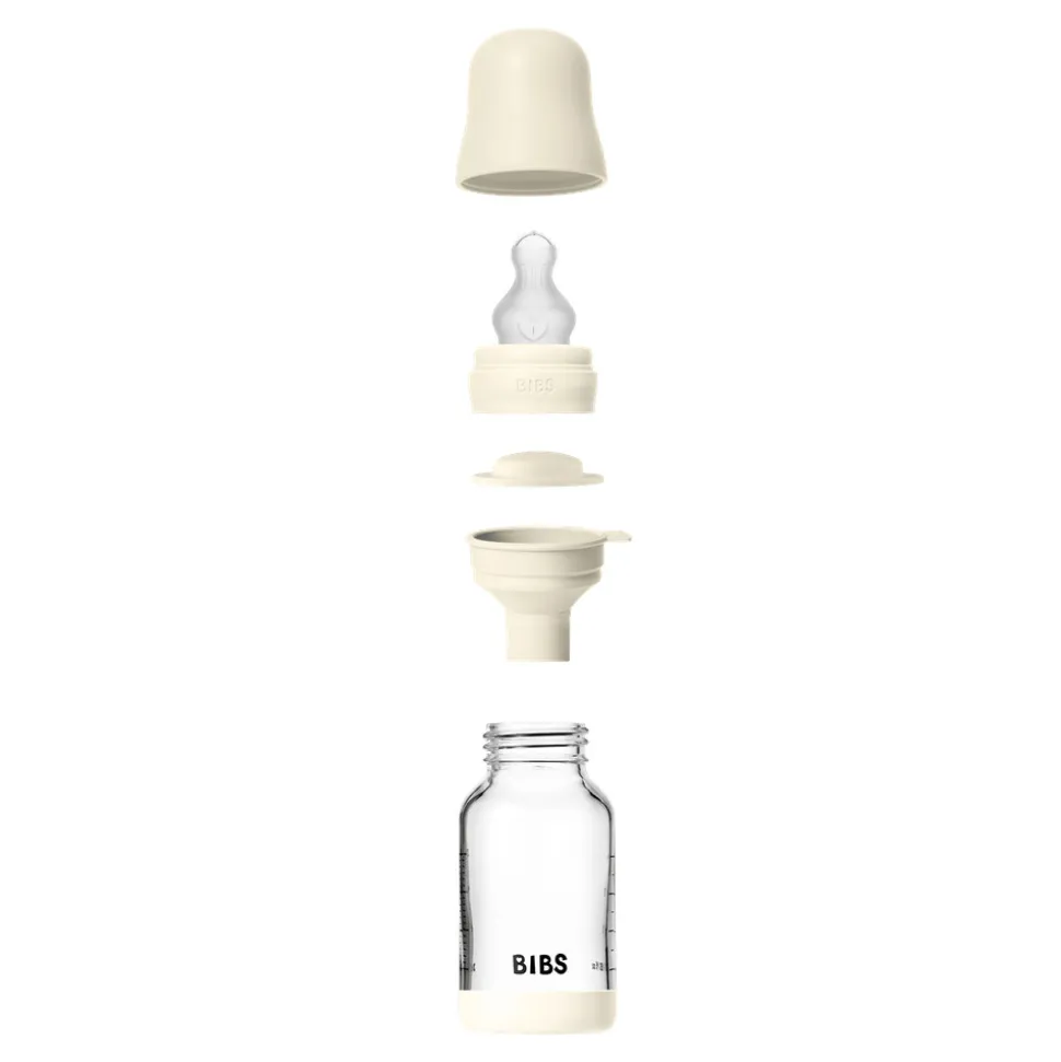 BIBS sutteflaske er omhyggeligt designet til både babyer og forældre. Flasken er lavet af borosilikatglas, som tåler høje temperaturer, er holdbart og frigiver ingen skadelige stoffer til mælken.