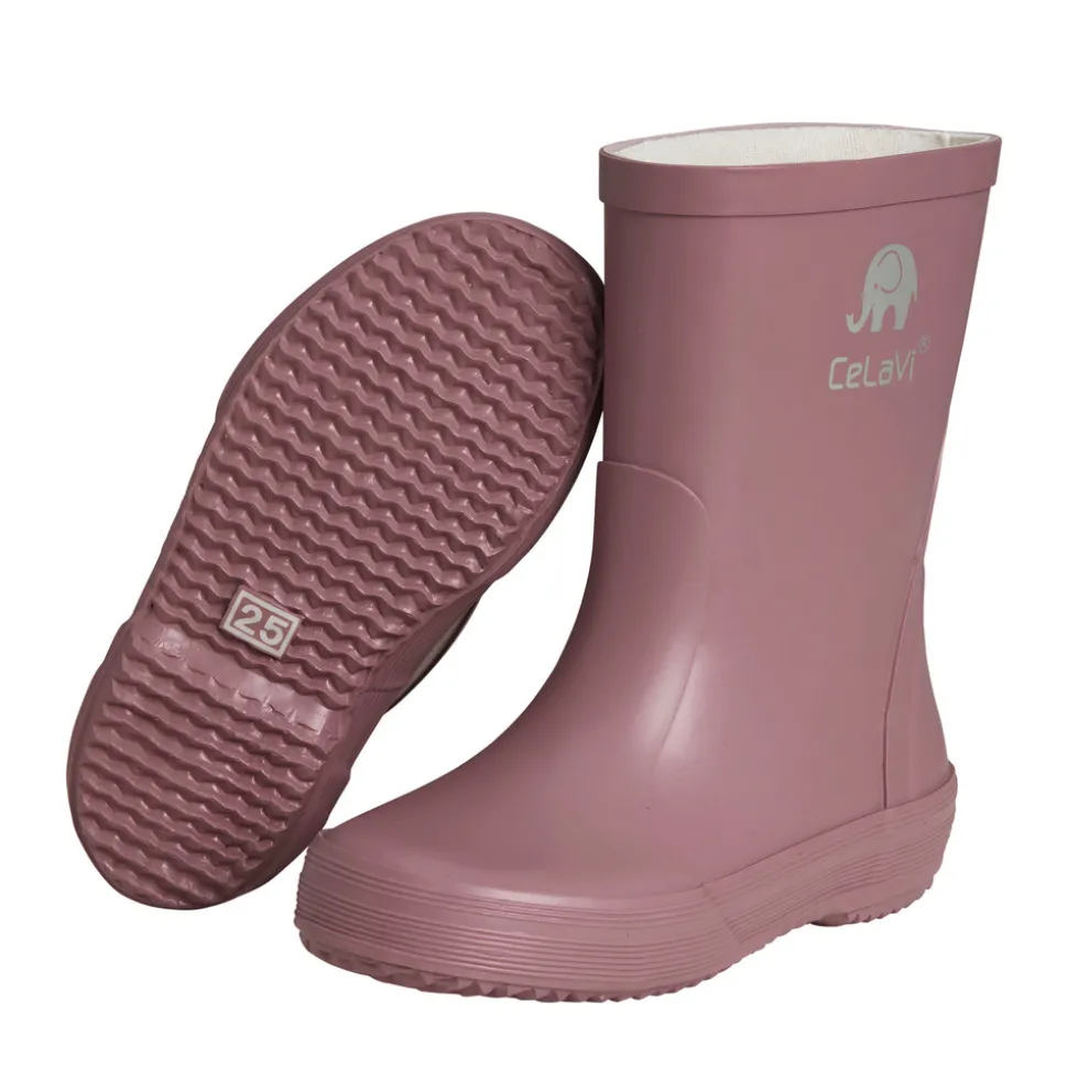 Kvalitetsgummistøvler fra CeLaVi. Støvlerne er håndlavet i lækkert naturgummi, og de har CeLaVi reflekslogo samt en refleksstribe ved hælen. Fås i flere farvervarianter, der matcher CeLaVi’s regntøj. Da gummistøvler til børn ofte bliver brugt flere timer ad gangen, er det vigtig for CeLaVi, at de er komfortable og funktionelle. Modellen er smallere i hælen, for at børnene bedre vil kunne bevæge sig, når de går, løber og leger. For at støvlen sidder optimalt på barnets fod, skal den som tommelfingerregel være fodens længde plus en finger (1-1,5 cm), så der er plads til storetåen og en tyk strømpe.