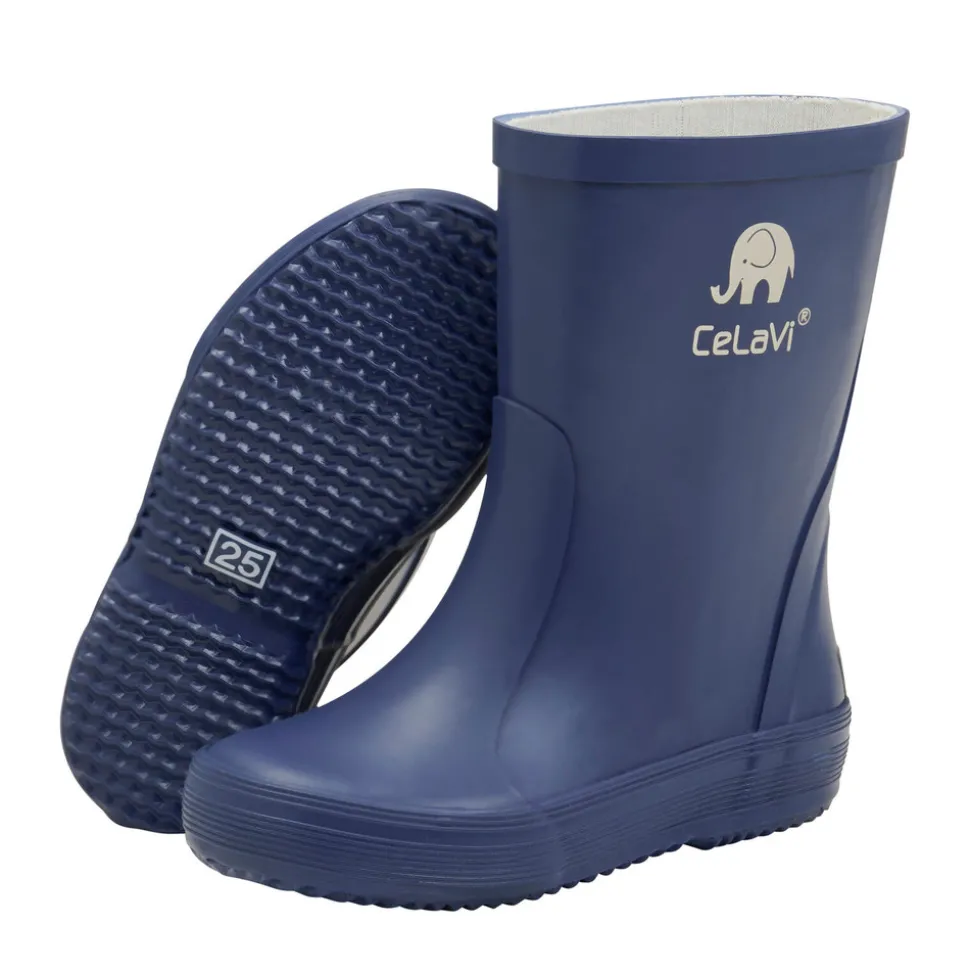 Kvalitetsgummistøvler fra CeLaVi. Støvlerne er håndlavet i lækkert naturgummi, og de har CeLaVi reflekslogo samt en refleksstribe ved hælen. Fås i flere farvervarianter, der matcher CeLaVi’s regntøj. Da gummistøvler til børn ofte bliver brugt flere timer ad gangen, er det vigtig for CeLaVi, at de er komfortable og funktionelle. Modellen er smallere i hælen, for at børnene bedre vil kunne bevæge sig, når de går, løber og leger. For at støvlen sidder optimalt på barnets fod, skal den som tommelfingerregel være fodens længde plus en finger (1-1,5 cm), så der er plads til storetåen og en tyk strømpe.