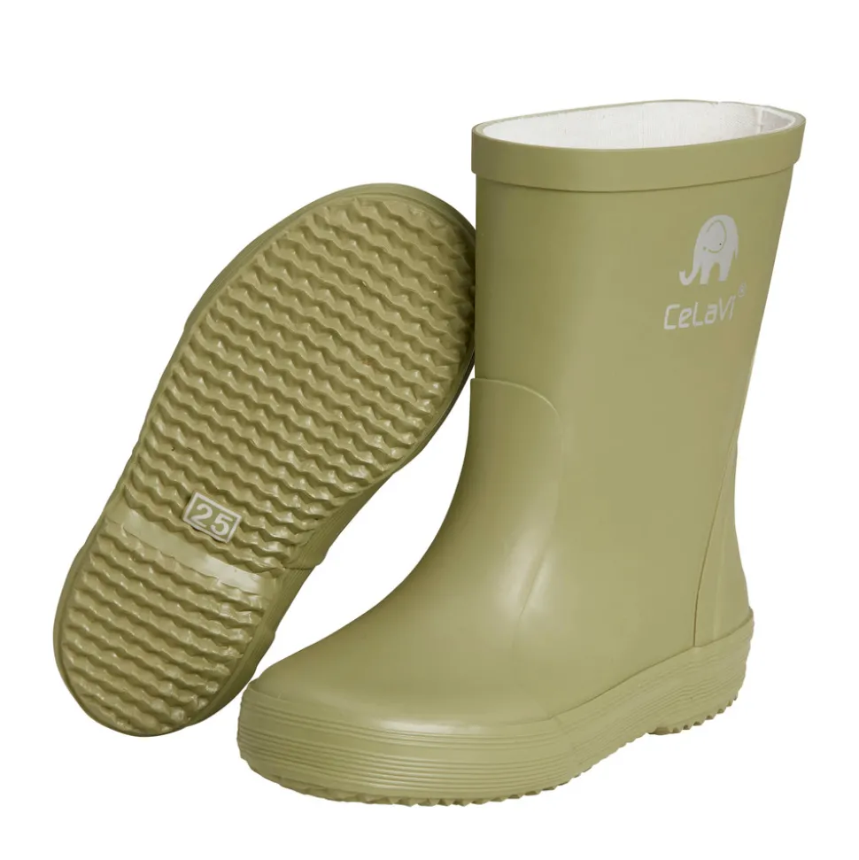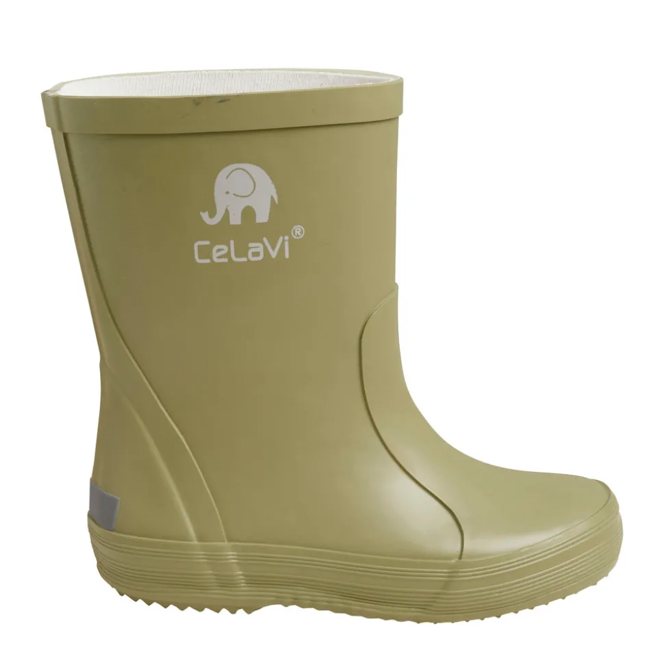 Kvalitetsgummistøvler fra CeLaVi. Støvlerne er håndlavet i lækkert naturgummi, og de har CeLaVi reflekslogo samt en refleksstribe ved hælen. Fås i flere farvervarianter, der matcher CeLaVi’s regntøj. Da gummistøvler til børn ofte bliver brugt flere timer ad gangen, er det vigtig for CeLaVi, at de er komfortable og funktionelle. Modellen er smallere i hælen, for at børnene bedre vil kunne bevæge sig, når de går, løber og leger. For at støvlen sidder optimalt på barnets fod, skal den som tommelfingerregel være fodens længde plus en finger (1-1,5 cm), så der er plads til storetåen og en tyk strømpe.