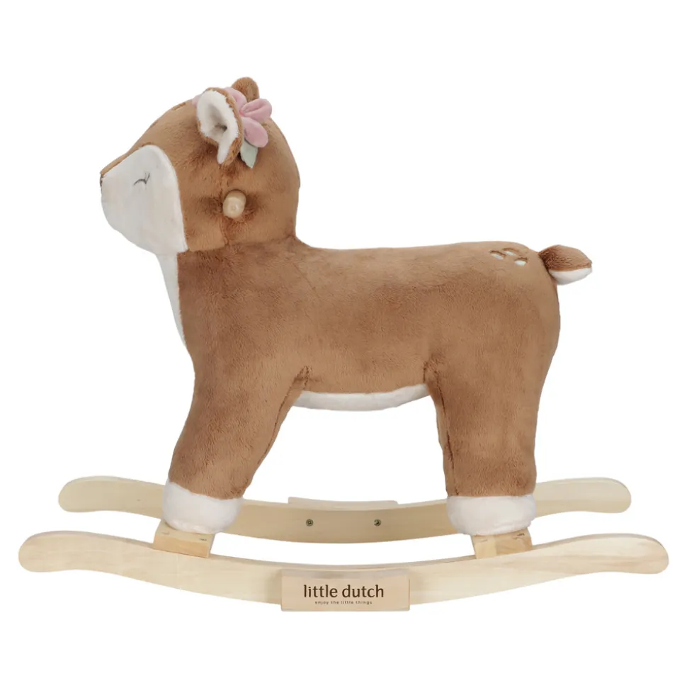 Hop op på denne søde gyngende hjort og vug dig af sted! Den robuste træramme sikrer sikker leg, mens den bløde pels gør den ekstra nuttet. Perfekt til børneværelset!