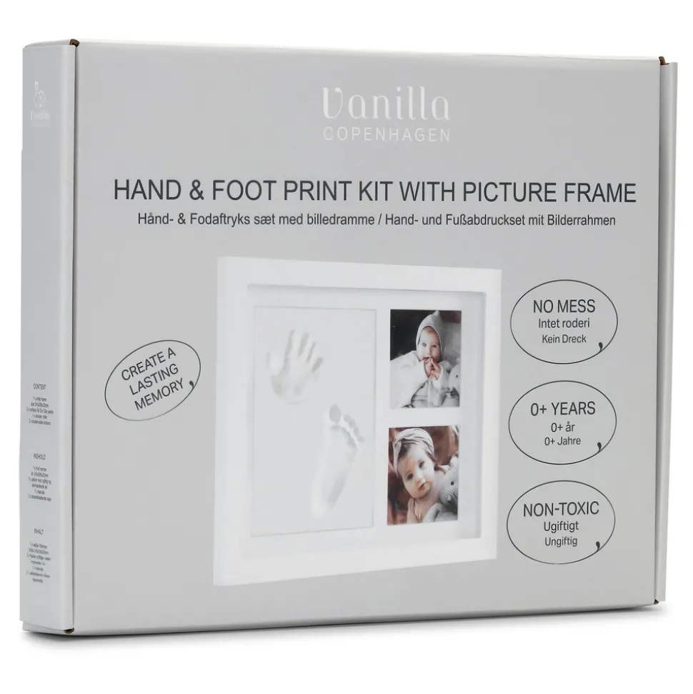 Blød letvægtsler – Fri for sundhedsskadelige materialer. Bevar minderne om din babys særlige øjeblikke med Vanilla Copenhagens billederamme. I vores rammer er der plads til fotografier af barnet ved siden af små hånd- eller fodaftryk.