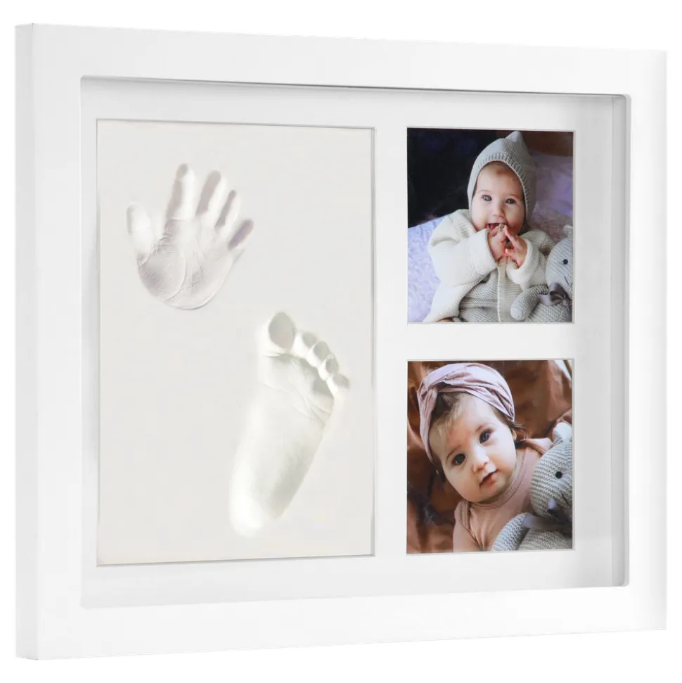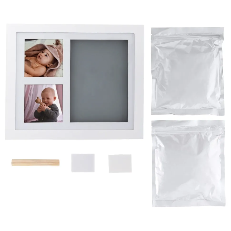 Komplet sæt med alt hvad du har brug for til at kunne lave et aftryk af barnets fod eller hånd derhjemme! Resultatet er et vedvarende og smukt minde, perfekt til dit eget hjem eller som gave.