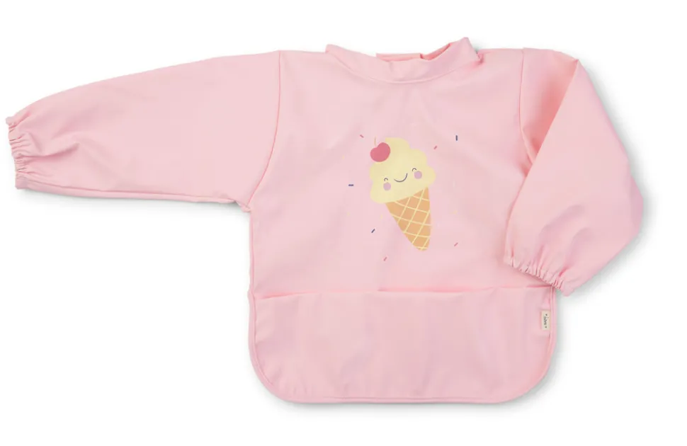 Du kan bruge den fra du starter at give din baby mad , og takket være dens praktiske justerbare hals med velcro, er den meget nem at tage af og på.