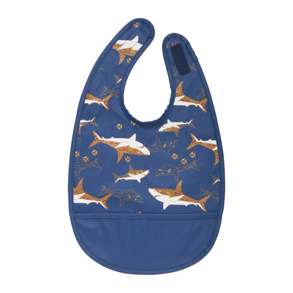 Hagesmæk i recycled polyester. Hagesmækken lukkes med Velcro i nakken. Med all-over-print. Foran har den en praktisk lomme, som fanger spild.