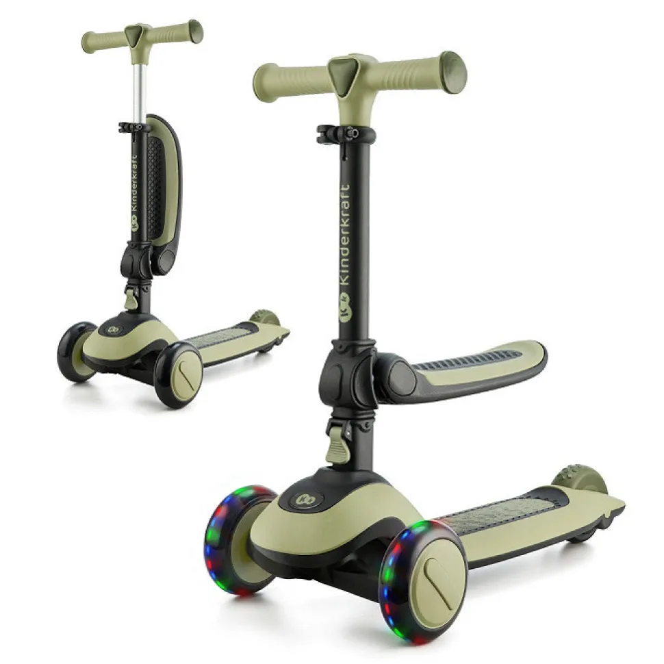 Halley 2-i-1 cykel: cykel og trehjulet løbehjul i et produkt. Sædet kan hæves og foldes sammen parallelt til styret: ikke kun derhjemme, men også under gåtur. Justerbart styr kan nemt tilpasses til det hurtigt voksende barn. Denne cykel og løbehjul i et, er udstyret med 2 lysende forhjul og bremse i baghjulet.