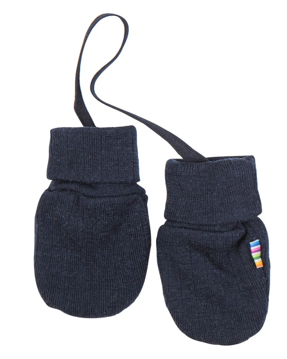 Luffer uden tommelfinger. Dobbelt lags. Bred ribkant ved håndled så deikke falder af. Hænger sammen med bånd så de ikke tabes. Blød, elastisk let uldkvalitet med lodret rille mønster som er behagelig at have på. Ensfarvet. Pure merino wool og Nordic Ecolabel mærket.