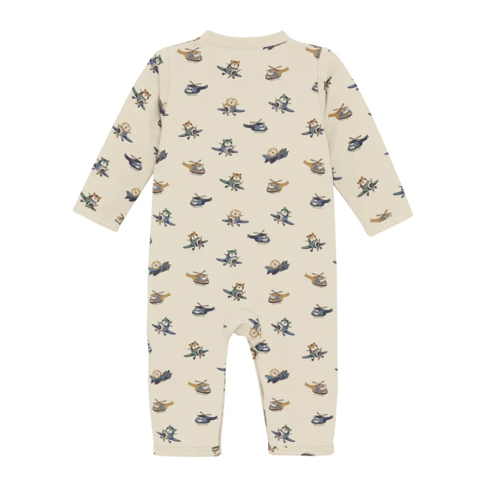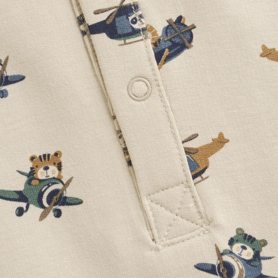 Heldragt fra Minymo med all-over print. Heldragten er lavet i en blød og behagelig kvalitet, der giver maksimal komfort for de mindste. Den er designet med praktiske trykknapper foran og mellem benene, som gør det nemt at klæde barnet på og skifte ble.