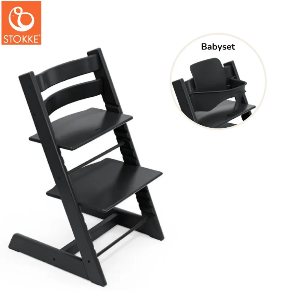 Tripp Trapp® højstolen er produceret i dyrket bøg, som er en stærk træsort, der gør produktet stabilt og holdbart, og sikrer en lang levetid. Tripp Trapp® højstolen løfter barnet op til spisebordet og skaber nærhed og fællesskab mellem barn og voksen, om det er spisetid eller hyggetid ved spisebordret. Det er let at tilpasse sidde- og fodplade i både højde og i dybden, i takt med at barnet vokser. Dermed opnås en optimal siddestilling med god bevægelsesfrihed og støtte for både fødder og ryg. Den stabile fodplade giver dit barn sikkerhed og frihed til at bevæge sig på stolen, hvilket stimulerer barnets motoriske udvikling. Fuld fodstøtte sikrer desuden at barnets ben ikke kommer til at sove. Når stolen er justeret korrekt sidder dit barn behageligt og ergonomisk korrekt uanset alder. Med Tripp Trapp® højstolen kommer dit barn til at sidde med ved spisebordet og nyde måltiderne sammen med resten af familien. Det solide og holdbare design gør at Tripp Trapp® stolen kan anvendes som højstol og senere som en ekstra stol – når der er gæster eller når der er brug for en skrivebordsstol, og med et klassisk look vil stolen aldrig gå af mode.