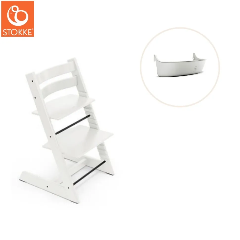 Højstolen: Produceret i dyrket bøg, som er en stærk træsort, der gør produktet stabilt og holdbart, og sikrer en lang levetid. Det er let at tilpasse sidde- og fodplade i både højde og i dybden, i takt med at barnet vokser. Dermed opnås en optimal siddestilling med god bevægelsesfrihed og støtte for både fødder og ryg. Den stabile fodplade giver dit barn sikkerhed og frihed til at bevæge sig på stolen, hvilket stimulerer barnets motoriske udvikling. Fuld fodstøtte sikrer desuden at barnets ben ikke kommer til at sove. Når stolen er justeret korrekt sidder dit barn behageligt og ergonomisk korrekt uanset alder. Med Tripp Trapp® højstolen kommer dit barn til at sidde med ved spisebordet og nyde måltiderne sammen med resten af familien.