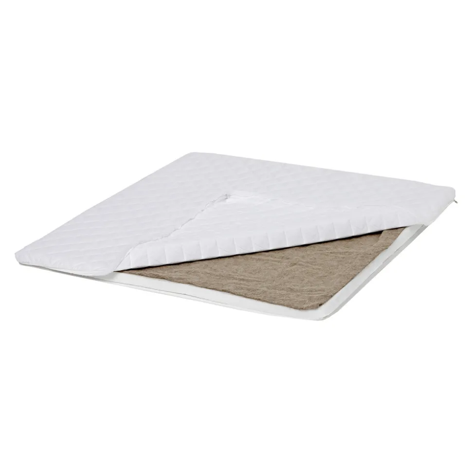 Madrassen har en kerne af skum og et toplag af hørfilt. Hør er et naturmateriale som, udover at isolere mod kulde, også modvirker fordybninger i madrassen. Hør er enormt åndbart og hjælper med at beholde en god temperatur, samt transportere sved bort fra barnet.