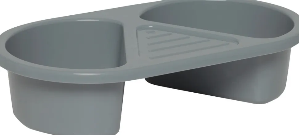 Meget praktisk todelt vaskefad til mindre afvaskninger. Den ene side kan bruges til rent vand, og den anden kan så bruges til at skylle vaskekluden i.