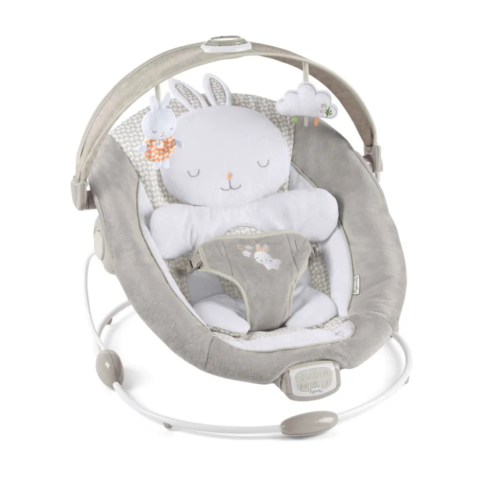 Ingenuity InLighten Bouncer holder den lille beroliget, trøstet og sikker ved din side. Den dybe, skråstol er foret med blødt plysstof, der smyger sig om din baby. Se, når babys øjne kigger på de fine lys, der danser over legetøjsbøjlen. Lyt til rolige melodier og lyde, mens din baby nyder den beroligende vibration.