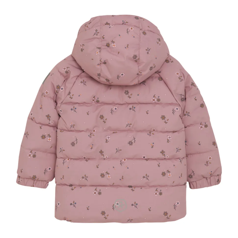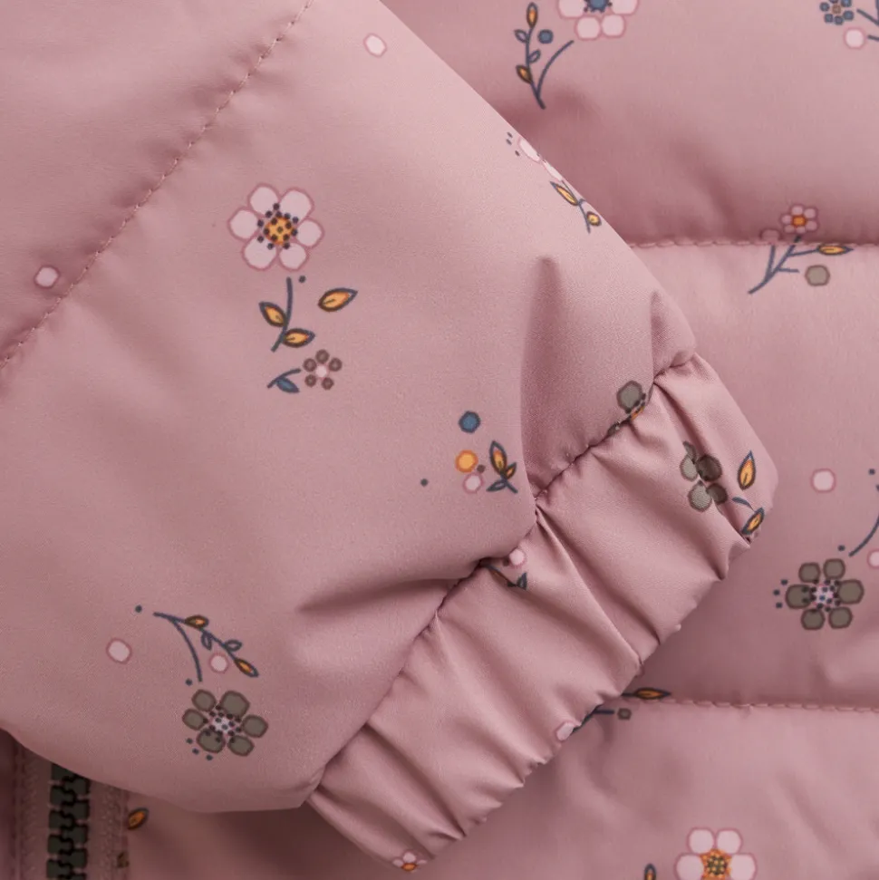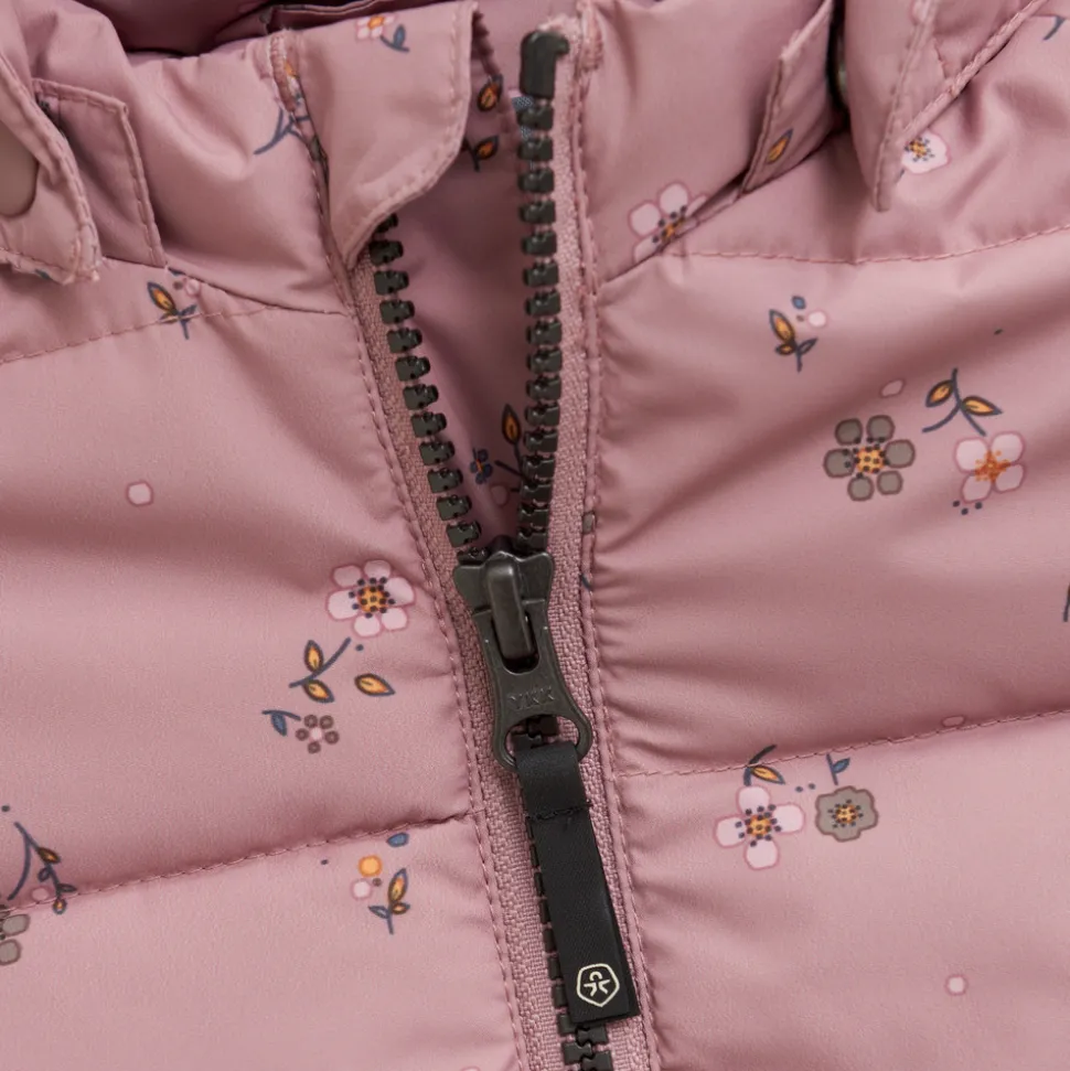 Varm, quiltet vinterjakke med flot all-over print – designet til at holde dit barn komfortabelt og tørt i vintervejret. Jakken er fremstillet i et slidstærkt og delvist genanvendt materiale, der er både åndbart, vind- og vandtæt. Med en testet slidstyrke på 20.000 gnidninger, et vandsøjletryk på 8.000 mm og en åndbarhed på 3.000 g/m²/24h, er den velegnet til både leg og hverdag i koldt og vådt vejr.