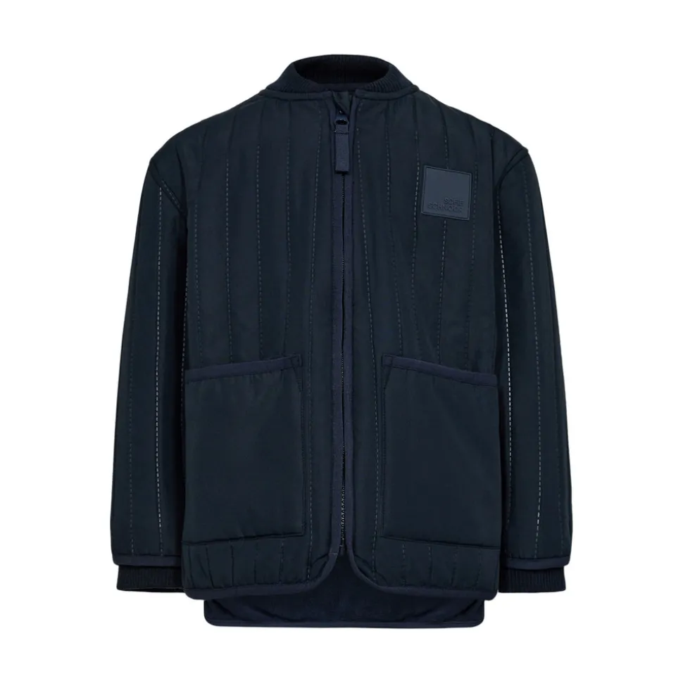 Jakke i navy, med 2 lommer foran og logo på brystet. Lukkes med lynlås