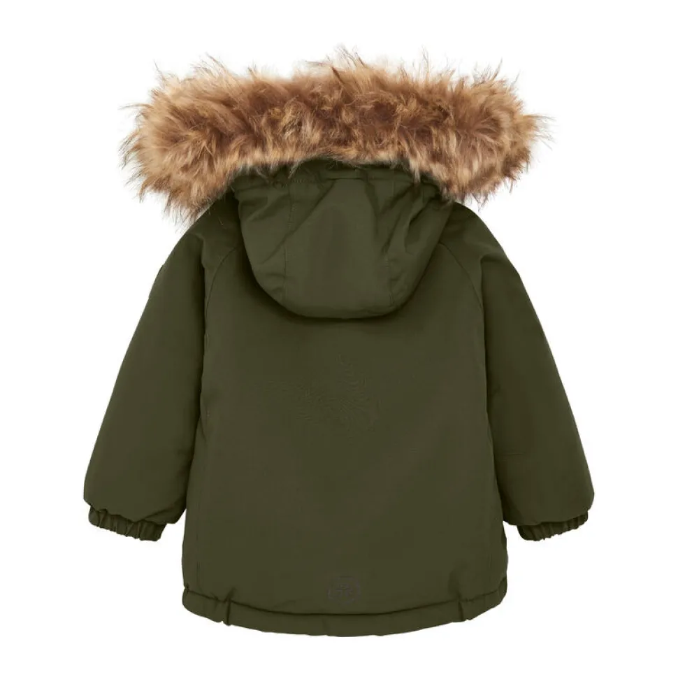 Varm parka i slidstærkt og delvist genanvendt materiale, imprægneret med BIONIC FINISH® ECO. Materialet er åndbart, vind- og vandtæt, så dit barn kan være ude i regn, sne og blæst uden at blive koldt og vådt. Testet slidstyrke på over 60.000 rubs, og åndbarhed på 2.000g. Jakken lukkes med kvalitetslynlås foran og ved de udvendige lommer, og hagebeskytteren sørger for, at lynlåsen ikke generer under hagen. Jakken har aftagelig hætte med aftagelig pelskant samt refleksdetaljer bagpå og på ærmet for øget synlighed. Med navneskilt indeni for nem identifikation. Certificeret i henhold til GRS – lavet af 58% genanvendt materiale (CERES-0366).