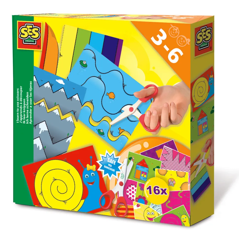 Lær dit barn at klippe med børnesaks. 16 klippeark medfølger.