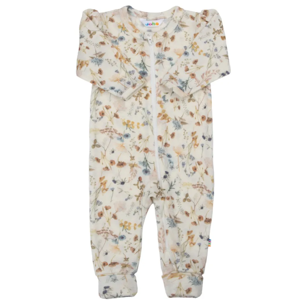 Heldragt med smart 2-i-1 fodfunktion, der giver fleksibilitet og komfort. Lukkes nemt med en trykknap ved halsen og en lynlås, der går ned i det ene ben – perfekt til hurtig og nem påklædning. Fremstillet i en blød og elastisk kvalitet af ren merinould, som føles behagelig mod huden. Dragten er dekoreret med et smukt digitalt print af efterårsblomster, der tilføjer et stilfuldt touch.