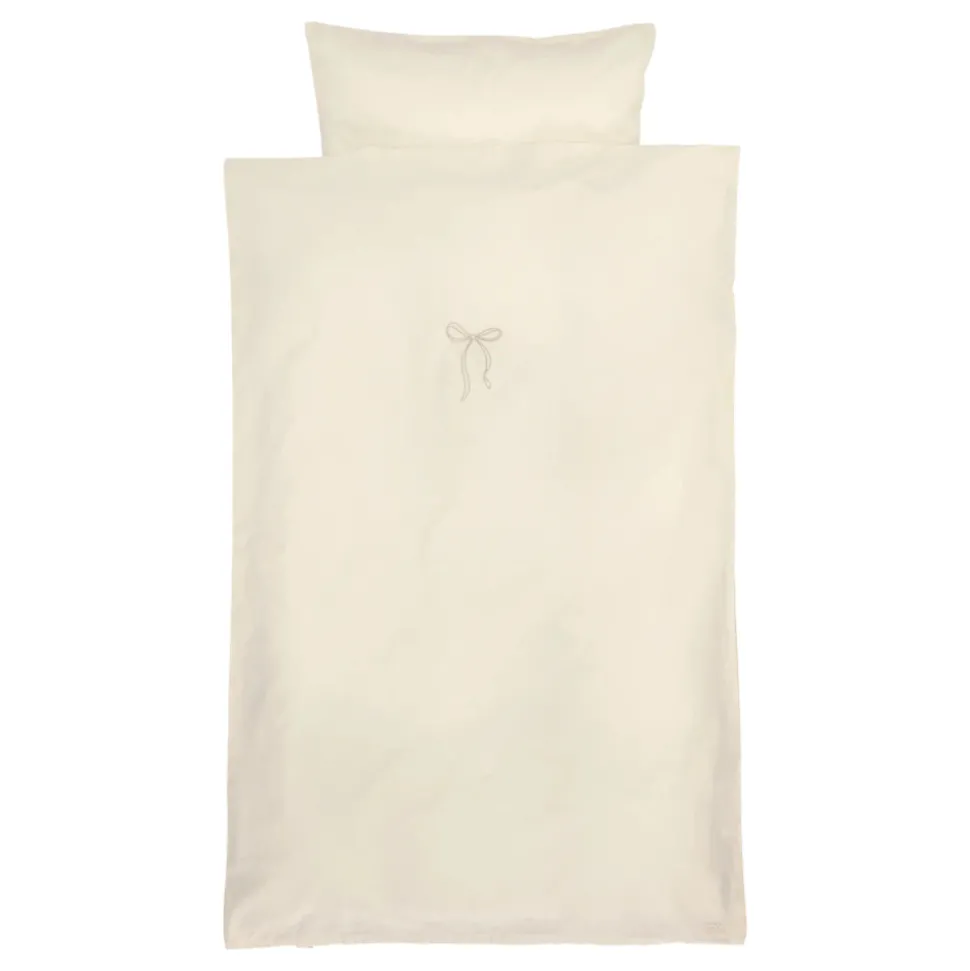 Juniorsengetøj af økologisk bomuld er ideelt til at være den første sengelinned til din baby. Det er ikke blot smukt, men også ekstraordinært blødt. Et charmerende element er den delikate broderede sløjfe på dynebetrækket.