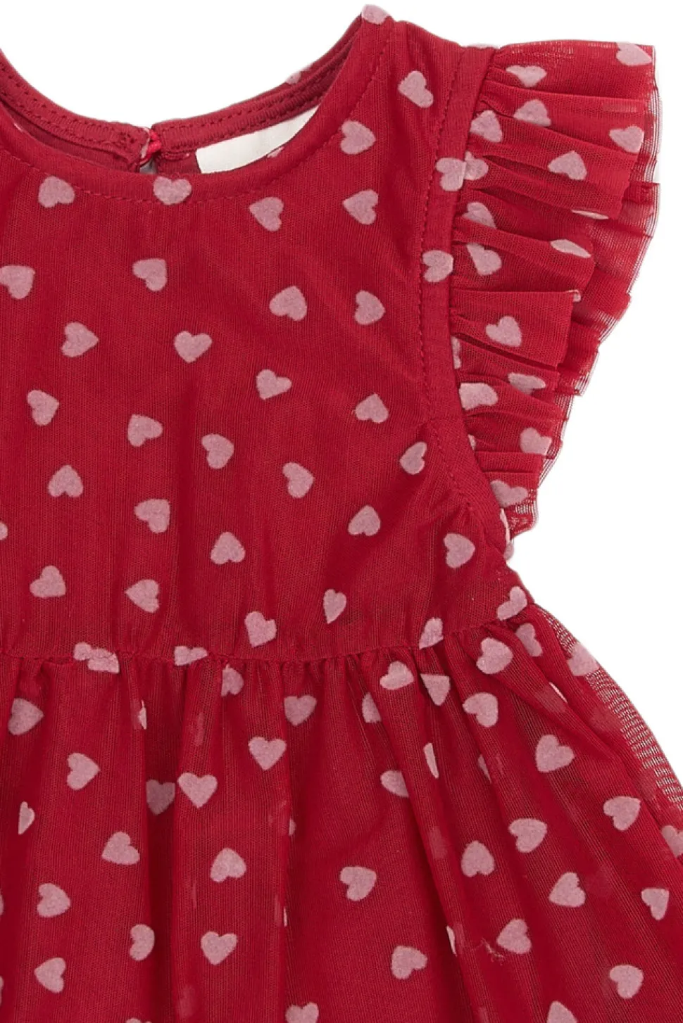Denne kjole fra THE NEW Siblings er perfekt til festlige lejligheder med sit romantiske og legende design. Den er lavet af lagdelt tyl med et delikat all-over hjerteprint og har søde flæsedetaljer ved ærmer og forneden. Kjolen har en rund halsudskæring og en behagelig pasform med en forsigtigt udstrakt nederdel, der giver masser af luftigt bevægelsesfrihed og et luftigt look.