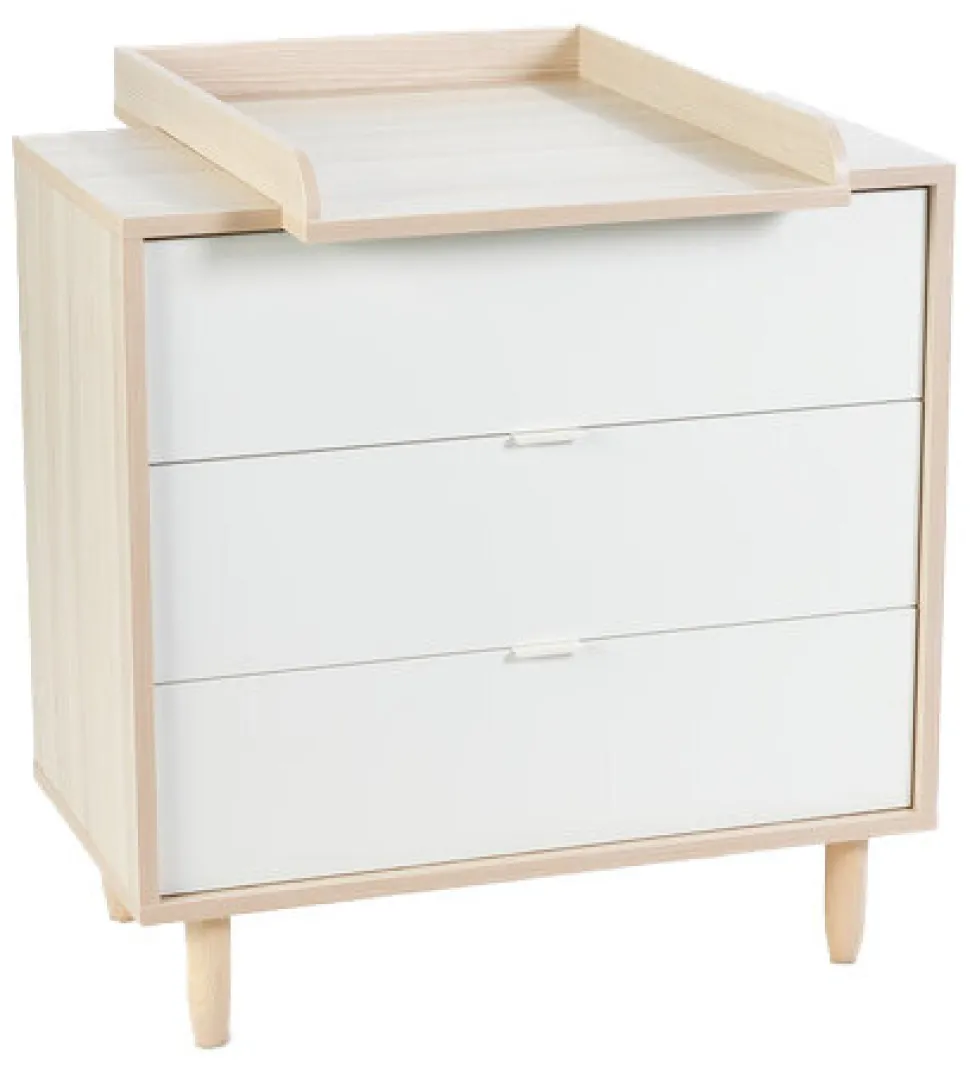 Enkel og solid puslekommode med 3 gode skuffer, som giver perfekt mulighed for opbevaring af det der er brug for lige ved hånden når det er pusletid. Rammen er i flot trælook som give hele kommeoden et flot design. Når pusletiden er forbi er puslepladen lige til at fjerne, og man har en kommode til børneværelset.