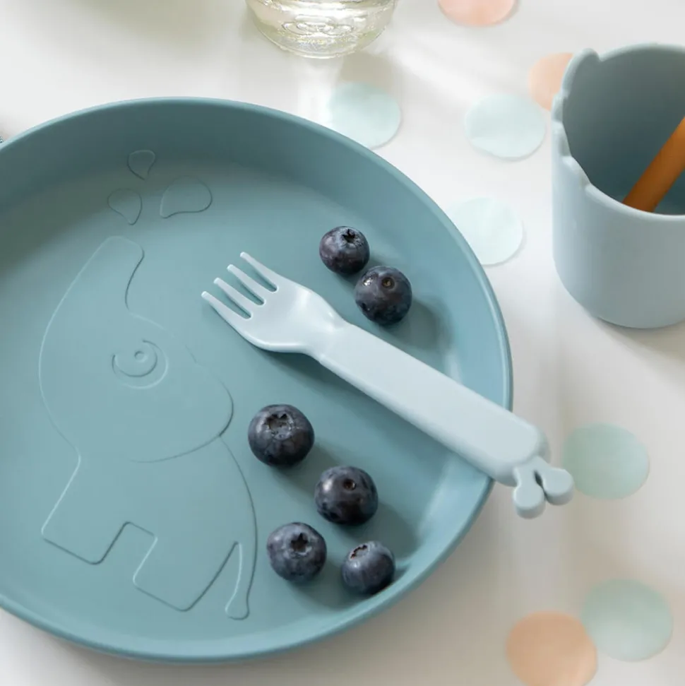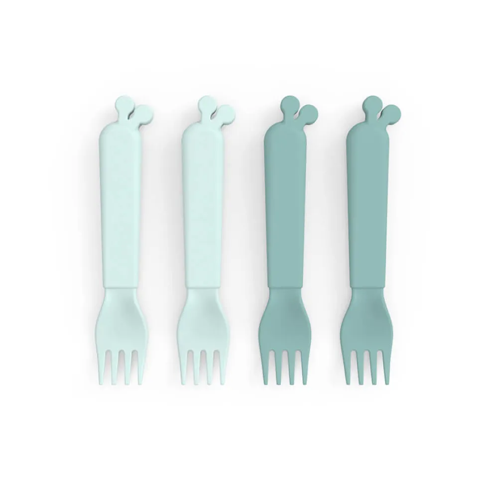 Når din tumling øver sig i at spise selv, er det godt at have rigeligt med gafler på lager. Kiddish gaflerne med Raffi ører passer perfekt i en lille hånd og gør det sikkert og nemt for din tumling at øve sig i at spise med bestik. Kiddish gaflerne er genanvendelige og produceret i Danmark. Når gaflerne er slidt op, kan de sorteres som hård plast og genanvendes til at producere nye produkter til hverdagen.