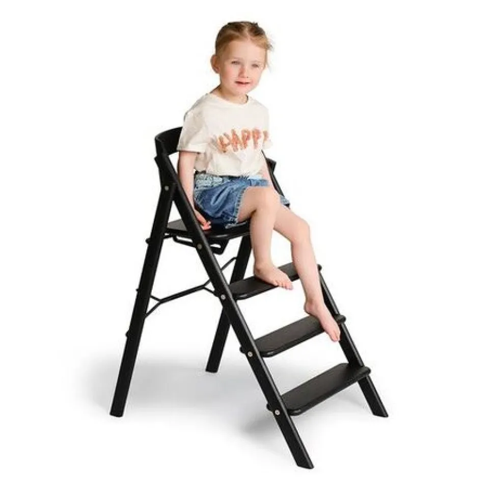 Kaos højstol: En smuk tilføjelse rundt om spiseborderet. Dens foldbare design gør den til en fantastisk pladsbesparende højstol, der også er perfekt lige til at tage med sig. De faste stigetrin er unikke og gør det nemt for barnet at klatre op og ned af KAOS Klapp højstolen på egen hånd. Barnet får en ergonomisk og aktiv siddeplads og hviler benene naturligt ved de forskellige trin, når de vokser. Bare fold stolen ud, klik sædet i låseposition, og den er klar til brug.