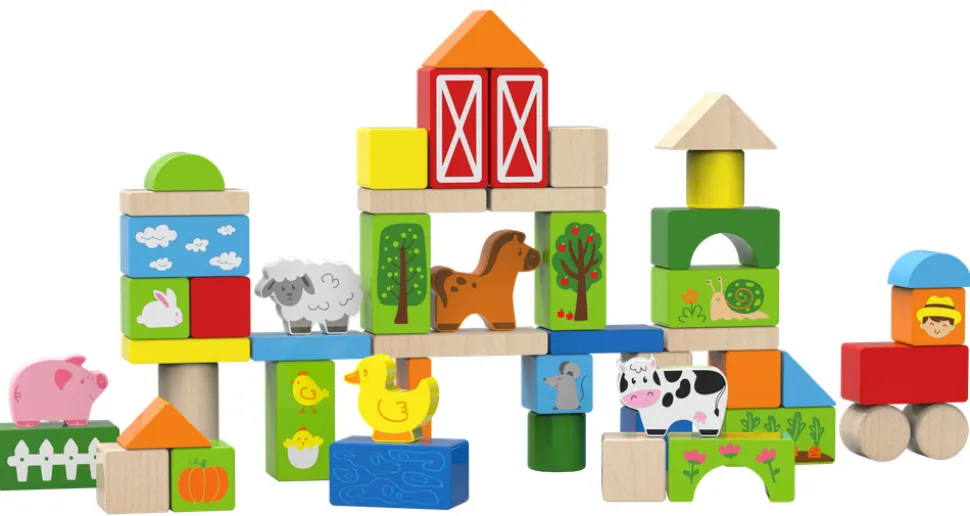 Klodserne har forskellige farver og figurer af bondegårdsdyr