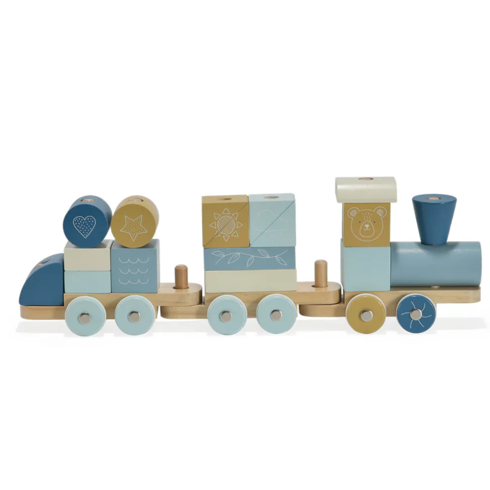 Klodstog fra Moover Toys er et sjovt og kreativt legetøj, der kombinerer leg og læring. Toget består af farverige klodser, som barnet kan stable og bygge med, hvilket stimulerer både finmotorik og fantasi. Det robuste trædesign sikrer holdbarhed, og de rullende hjul gør det nemt for barnet at trække toget rundt og lege timevis. Perfekt til små opdagelsesrejsende, der elsker at bygge og udforske.