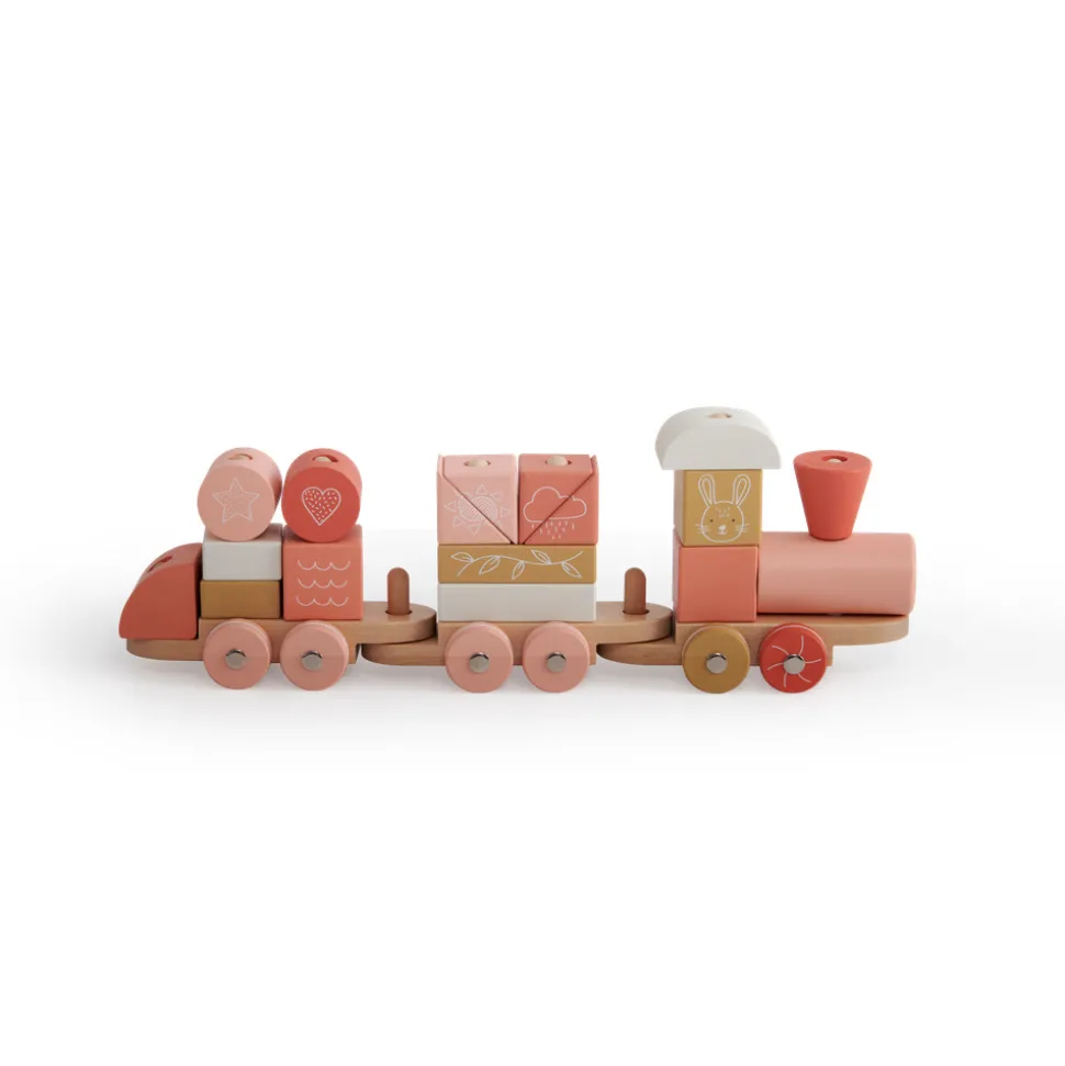 Klodstog fra Moover Toys er et sjovt og kreativt legetøj, der kombinerer leg og læring. Toget består af farverige klodser, som barnet kan stable og bygge med, hvilket stimulerer både finmotorik og fantasi. Det robuste trædesign sikrer holdbarhed, og de rullende hjul gør det nemt for barnet at trække toget rundt og lege timevis. Perfekt til små opdagelsesrejsende, der elsker at bygge og udforske.