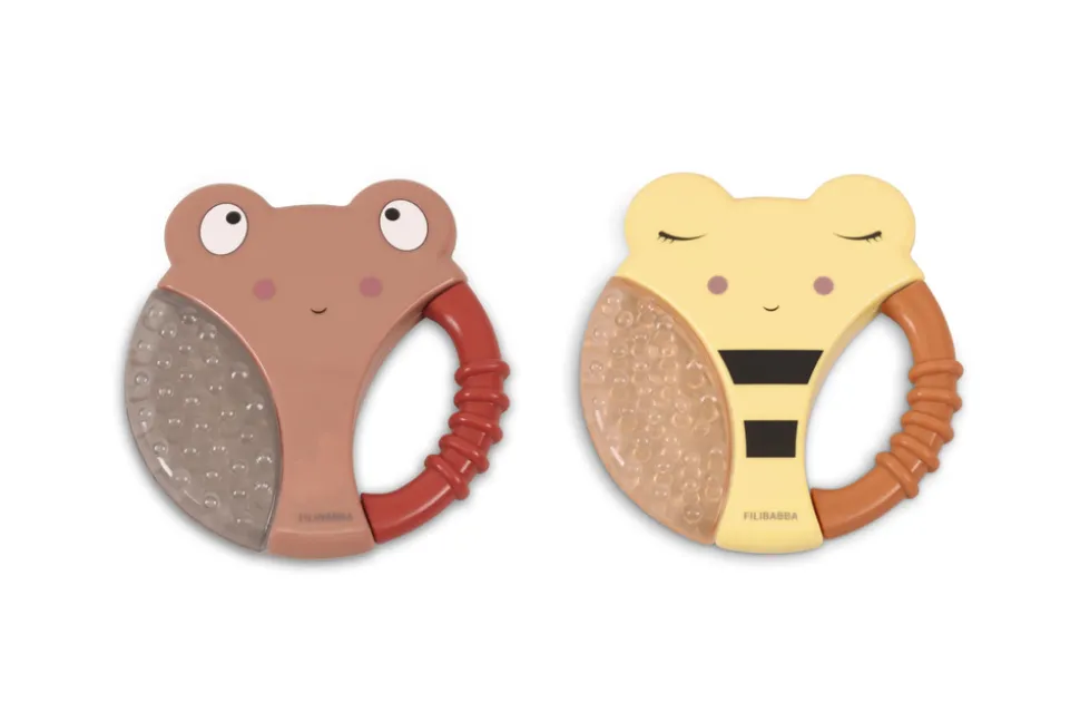 Hjælp din baby med Filibabba søde kølebideringe i diskrete farver. Kølebideringen er fyldt med sterilt vand og lindrer dit barns ømme gummer ved tandfrembrud. Det lille håndtag med struktur gør det nemt for barnet at gribe om ringen. Bideringene er designet med spændende strukturer og former, som stimulerer dit barns mund og hænder. Bideringene har en rolig klokkelyd, hvorfor de også fungerer som rangler.