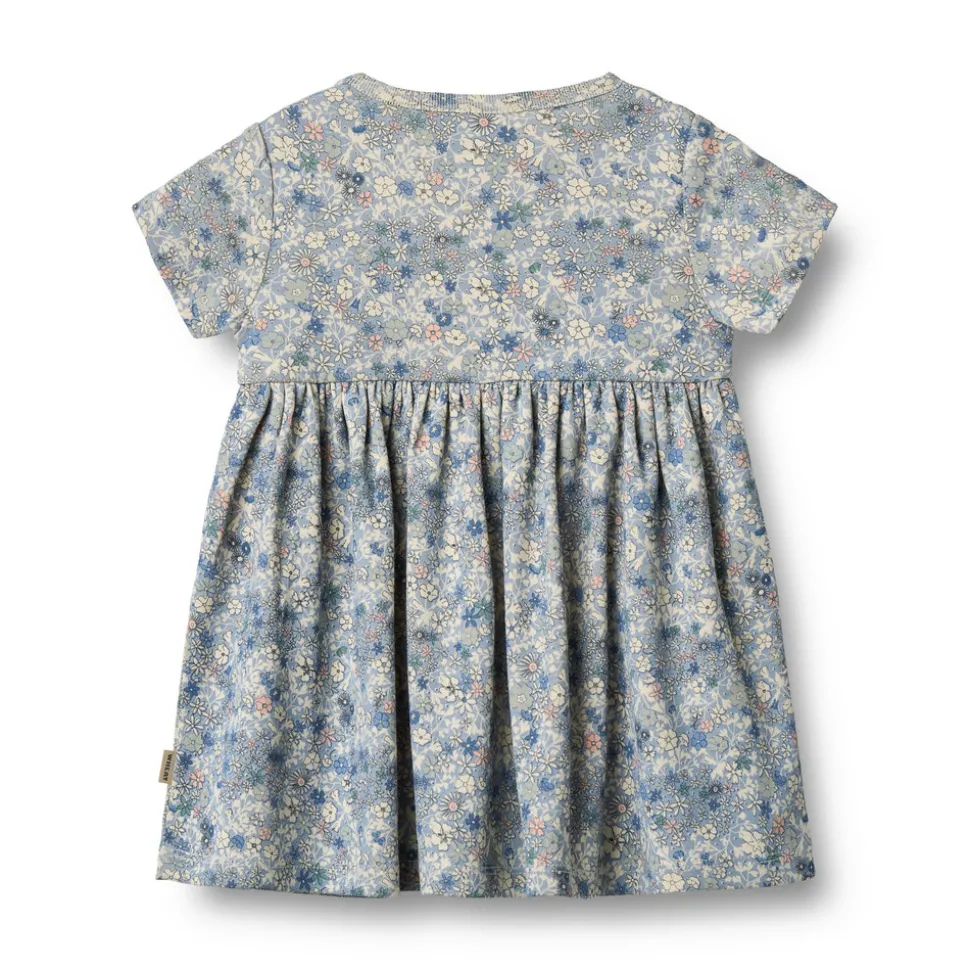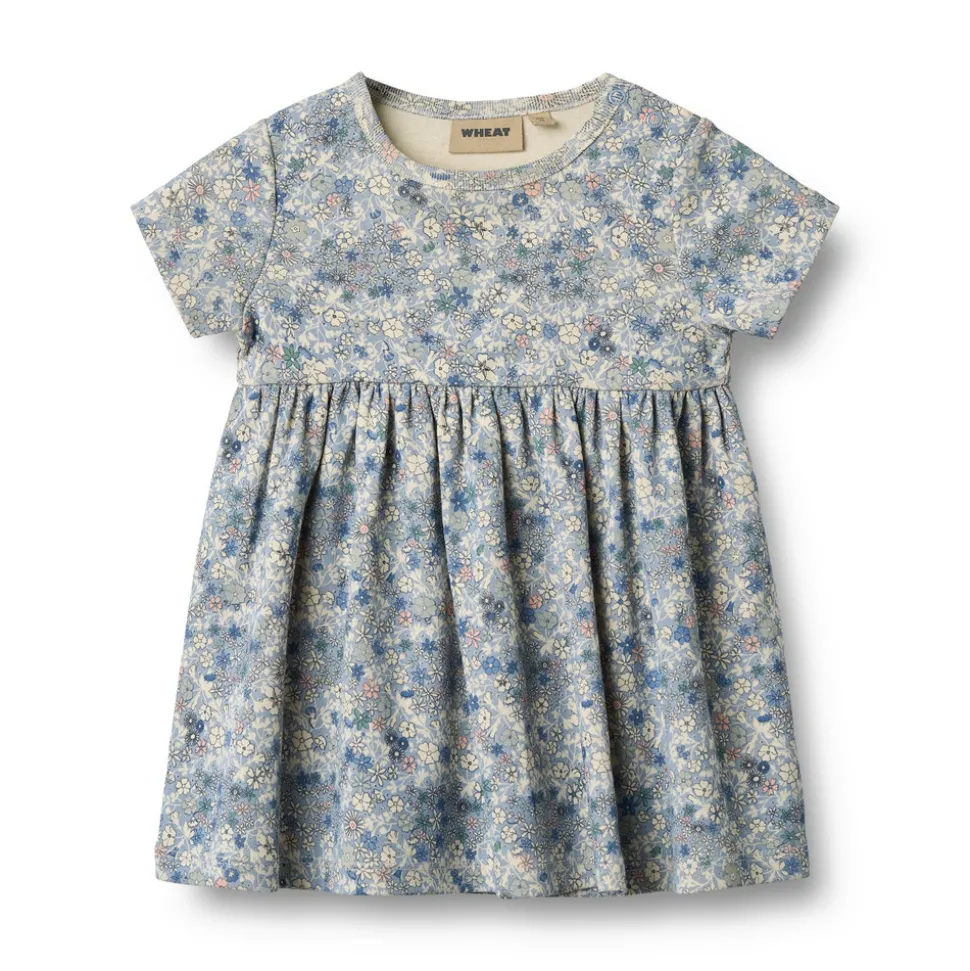 Wheat’s søde kjoler har en løs pasform, hvilket gør dem nemme og behagelige for din baby at have på. Kjolen har en flatterende skæring med sammenkrævninger, hvilket giver kjolen noget dejligt fylde. Den har trykknapper på skulderen for at gøre det lettere for dig at klæde din baby på.