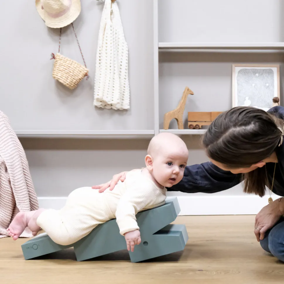 bObles krokodille M er et fantastisk tumlemøbel til børn i alle aldre, og med dets unikke størrelse og smukke farver vil den uden tvivl blive et hit på børneværelset. Der er næppe noget legetøj, der kan konkurrere med en bObles Krokodille, når det gælder balance, koordination og store grin. For den helt lille baby kan Krokodille vendes om på ryggen og bruges som sliske. Herfra kan mor og far nyde nærværet med deres lille ny, når baby ligger på ryggen og kigger op. Læg en bObles Kylling under Krokodille og pludselig har du den sjoveste baby-vippe. For de kravlende babyer er trinene på Krokodille den perfekte første trappe, hvor der også kan trænes faldrefleks.