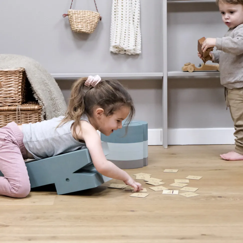 De sjove aktiviteter stopper dog ikke her. Trappen bliver kun endnu mere underholdende, når tumlingen er kommet op at gå. Sæt den for enden af sengen som hjælp til selv at komme op – det styrker barnets selvtillid at mestre den slags discipliner, ligesom bObles Krokodille pynter i ethvert børneværelse med sit ikoniske og sjove design. Og når barnet bliver rigtig modigt, kan to Krokodiller blive til stylter eller en lille bænk. De naturlige farver er omhyggeligt udvalgt, for at skabe rolige, sanselige og inspirerende omgivelser for barnet at lege i, samtidig med at farverne, såvel som tumlemøblerne er tidløse og kan holde til mere end én sæson.