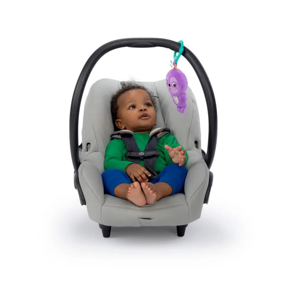 Dette dovendyr er vågnet fra sin lur og er klar til at lege! Din lille eventyrer vil elske dette ranglelegetøj fra Bright Starts. De klare farver og lyde vil få dit barn til at række ud efter sin nye lilla dovendyrsven, mens du nyder at se dit barn lære nye færdigheder. Babyer elsker farverige mønstre, bideringe med forskellige teksturer og dovendyrets skjulte klokkespil, der siger fascinerende lyde, mens forældre er vilde med den venlige dovendyrs alsidighed. Legetøjet kan nemlig nemt fastgøres til barnevognen, pusletasken og aktivitetsstativet, så din baby aldrig behøver at undvære sit yndlingslegetøj. Alt dette gør dette fine dovendyr til familiens favorit!
