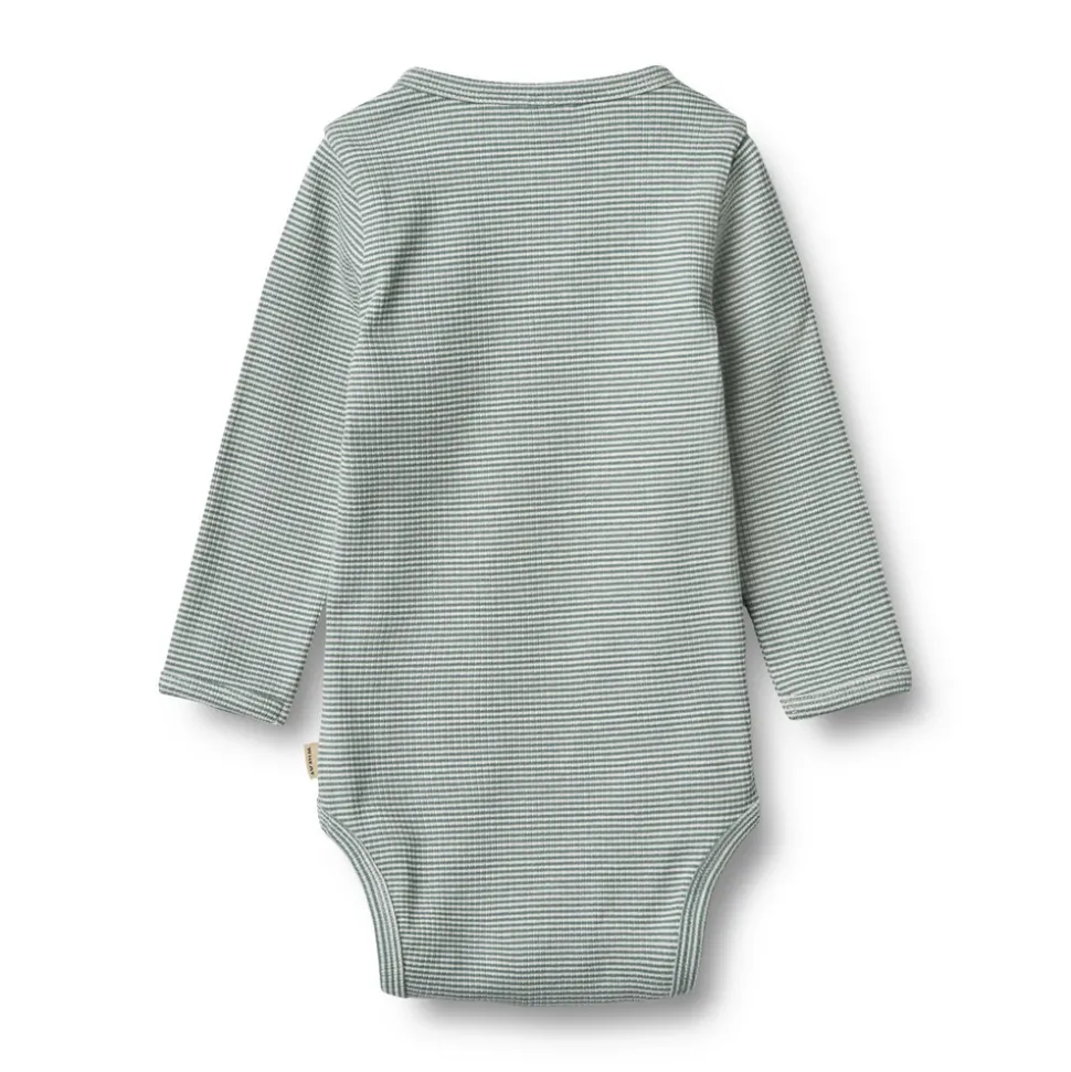 Wheat’s body er unisex og et sandt essentielt stykke tøj i din babys garderobe, da det kan bruges alene eller som et ekstra lag under hverdagsbeklædning. Bodyerne har enten trykknapper på skulderen eller knapper ved halsen for bedre komfort, når du klæder din baby på. Bodyen har også trykknapper i bunden, hvilket gør det lettere for dig at skifte din babys ble.