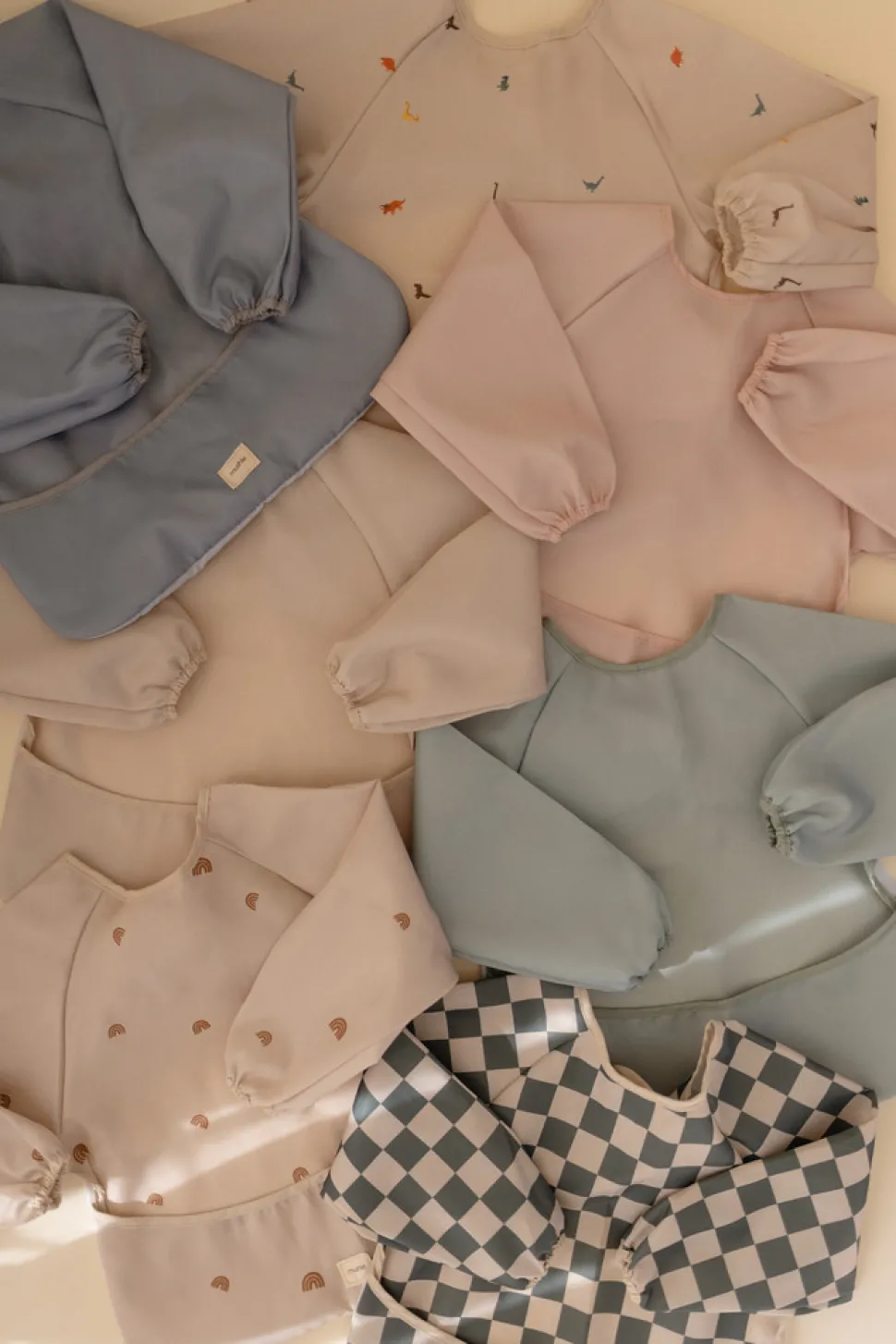 Mushie langærmet spisesmækEt langærmet spisesmæk fra Mushie til måltider uden svineri!Med dette praktiske spisesmæk i et vandafvisende materiale kan du undgå uorden under måltidet – det har en bred lomme, der let fanger maden og forhindrer den i at skabe rod på gulvet eller på tøjet.Spisesmækken har velcrolukning bagpå nakken, der sikrer en behagelig pasform. Størrelsen er velegnet til børn mellem 6-24 måneder. Spisesmækken er nemt at tørre af, men kan også sikkert vaskes i vaskemaskinen.Mushie er en internationalt anerkendt amerikansk producent, og deres produktemballage viser det amerikanske produktnavn.Derfor er det muligt, at Mushies produkter er mere kendt under dette navn.Materiale: Polyester og BomuldStørrelse: 10,5 cm x 2,5 cm x 1,1 cmTåler: OpvaskemaskineVaskeanvisning for spisesmæk:– Koldt vand med max 1200 omdrejninger