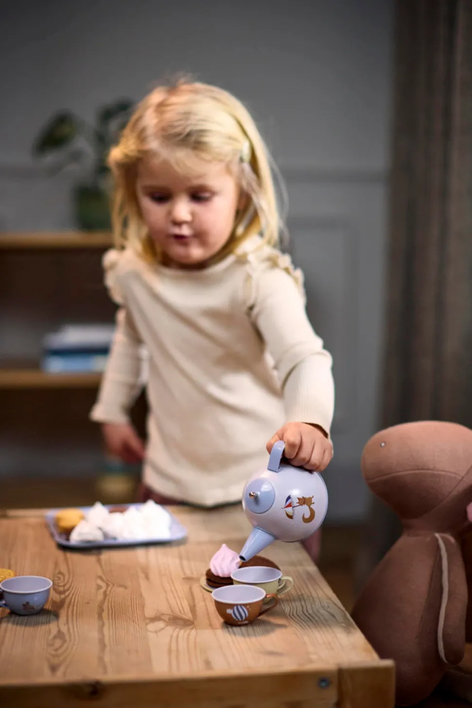 Børn elsker at holde et teselskab! Med dette charmerende te-sæt fra FILIBABBA kan de små invitere deres bamser, dukker eller endda mor og far til at deltage i legen. Sættet er designet til at inspirere til fantasifuldt rolleleg og bringer klassisk legetid til live, samtidig med at det fremmer kreativitet og sociale færdigheder.