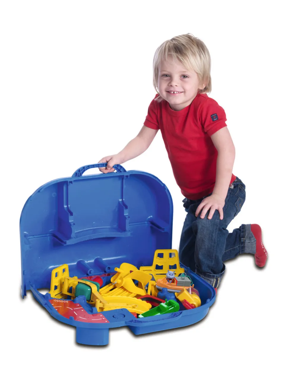 AquaPlay LockBox er nem at tage med sig og kan forlænges. 25 dele inkl. 1 containerskib, 1 amfibiebil og figuren flodhesten Wilma. Mål: 85×65 cm. Fra 3 år. Produceret i Tyskland.