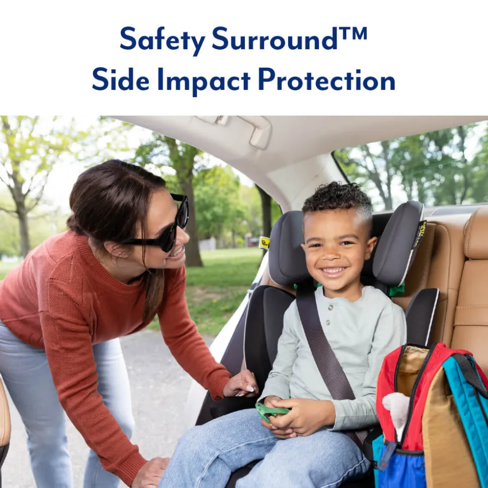 i-Size og R129 godkendt.Safety Surround™ Side Impact Protection omslutter dit barn for forbedret beskyttelse.Letvægt på kun 3,4 kg, hvilket gør det nemt at flytte mellem køretøjer for problemfri rejser.Åbne bælteføringssløjfer hjælper med at sikre korrekt placering af sikkerhedsselen.Maskinvaskbare betræk for nem rengøring.Premium polstret sæde leverer komfort på hver eneste tur.10-positioners nakkestøtte giver korrekt støtte til dit barns hoved og nakke.2 udtrækkelige kopholdere holder drikkevarer, gadgets og godter lige inden for rækkevidde.Aftagelige polstrede armlænsbetræk for ekstra komfort på hver rejse.Maskinvaskbare betræk.Fremadvendt højrygget booster fra 100-150 cm (ca. 3,5 til 12 år)Mål: L: 39 x B: 45,6 x H: 60,5-81,5 cm.Vægt: 3,4 kg.