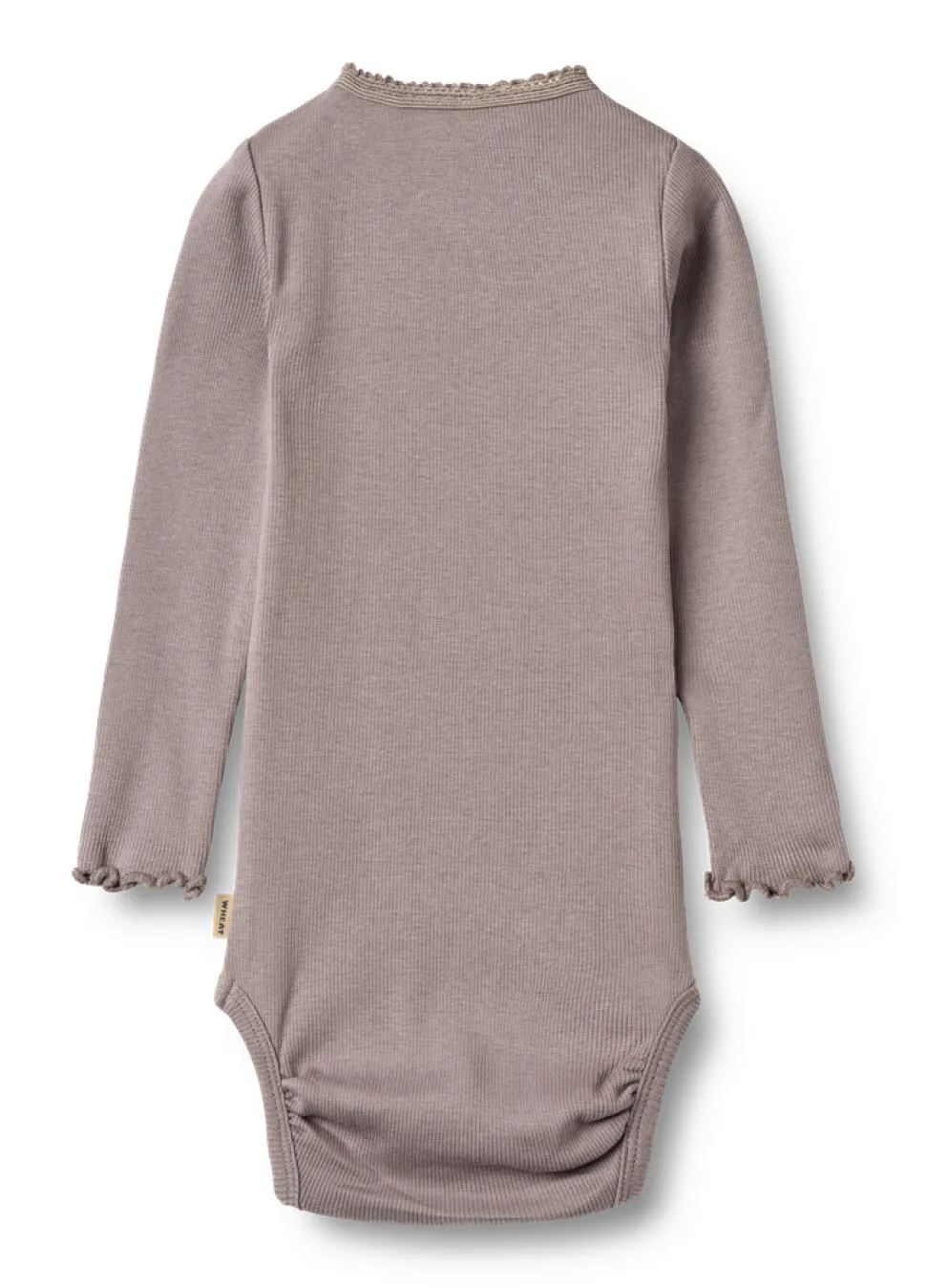 Skøn langærmet rib body i økologisk bomuldsblanding til din baby. Wheats skønne bodyer er designet til unisex og er en sand klassiker i ethvert hjem med småbørn. Denne body har trykknapper på den ene skulder samt i bunden for bedre komfort, når du skal klæde dit barn på. Brug bodyen som den inderste del i ethvert outfit, da den er blød at have tæt på huden.